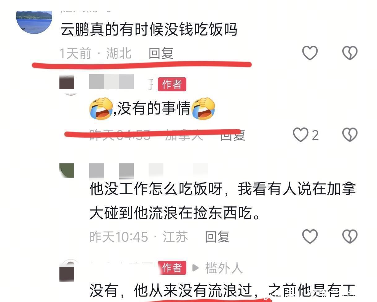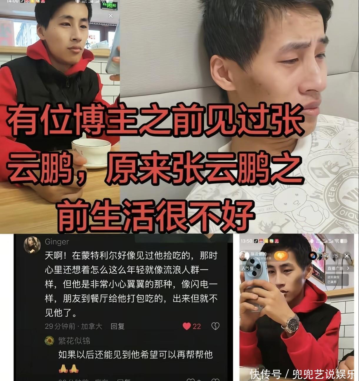 有网友曾经爆料,说在蒙特利尔看到张云鹏在捡吃的东西。司机大哥站出来澄清,他表示张云鹏从未有过流浪的经历,失业后还能拿到失业补助,生活完全没问题。